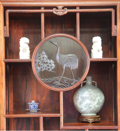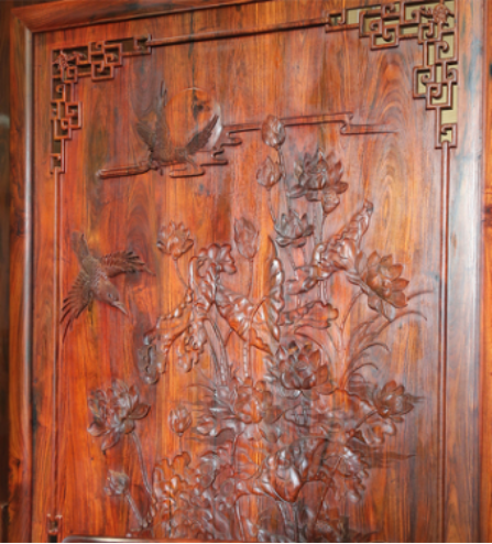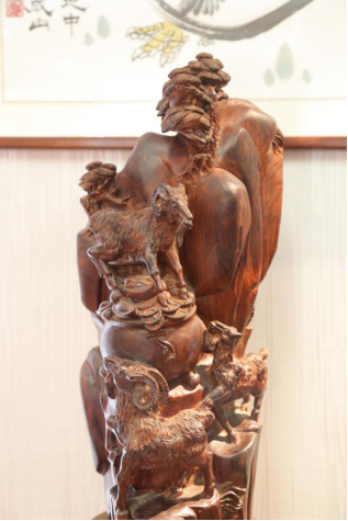 在采訪中,他向我們介紹了每一件收藏品,不時娓娓道來一番:中國的字畫、云南的石、雕刻藝術(shù)品,產(chǎn)自中國的東西,他都由衷地喜愛。他手指著身旁一副花鳥雕刻畫,說:“這是自己親自選材,現(xiàn)場作畫,和工匠一起研究雕刻完成的作品。”