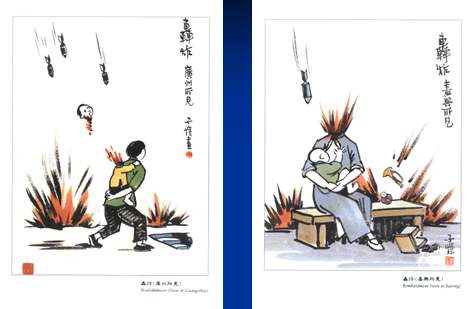 在抗戰(zhàn)時(shí)期,他的畫風(fēng)發(fā)生了很大的轉(zhuǎn)變,外公畫了很多畫批判戰(zhàn)爭(zhēng)的殘酷,批判侵略者,畫風(fēng)從黑白畫變成了彩色工筆畫。外公用他的五寸不爛之筆,揭露侵略戰(zhàn)爭(zhēng)的殘酷,揭露戰(zhàn)爭(zhēng)給人民帶來(lái)的深重災(zāi)難。他曾說過:“寧做流浪者,不當(dāng)亡國(guó)奴。身外之物又何足惜,我雖老弱,但只要不轉(zhuǎn)乎溝壑,還可憑五寸不爛之筆來(lái)對(duì)抗暴敵?!?/p>