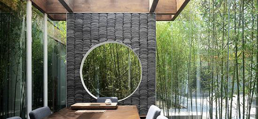 “我們尊重建筑本身,體現(xiàn)建筑本質(zhì),對(duì)建筑空間進(jìn)行擴(kuò)展。首先考慮的是對(duì)中國(guó)民族的回歸與中華文化的傳承。靈感來(lái)自電影《臥虎藏龍》所展現(xiàn)的‘俠’,空間中充斥著木板、青瓦、青磚、竹林,將這些通用的元素巧妙組合,描繪一個(gè)具有濃郁東方色彩的江湖美感?!箅[于市’,這個(gè)空間與大都市只有一墻之隔,身處其中的人可尋到一份寧?kù)o。”