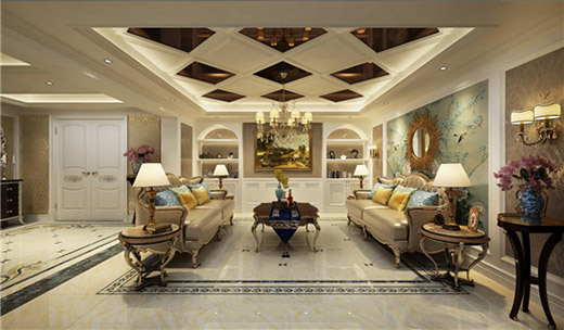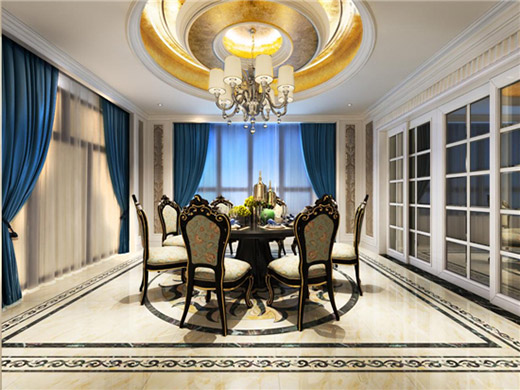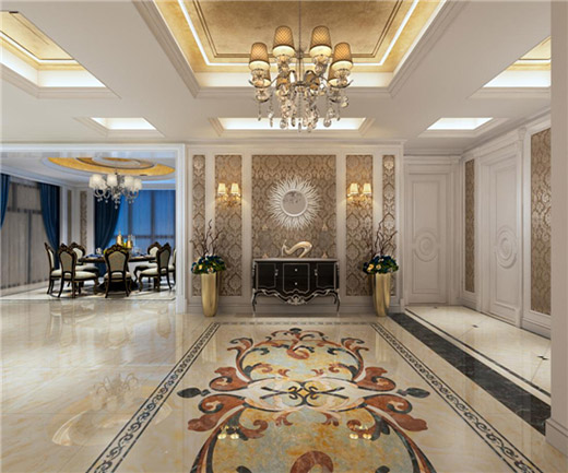 入戶:別墅的入戶地面采用了飽滿的歐式拼花造型,豐滿了空間,體現(xiàn)出大氣的感覺。