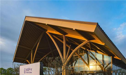 本項目是一個綜合展示大廳,結合游客服務,旅游景區(qū)規(guī)劃的展示中心。它長達約73米,總面積約1600平方米,流線型的屋檐線條,在海岸余暉照耀之下仿佛一艘歸家的帆船,慵懶的依靠在茅尾海的海岸之上。中心展示及活動中心幾個功能,項目位于海灣之邊,面海背山。