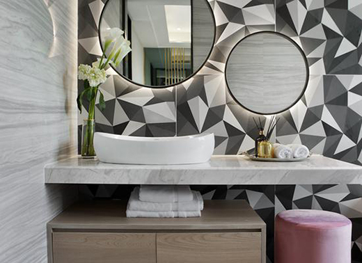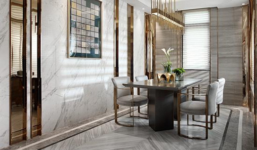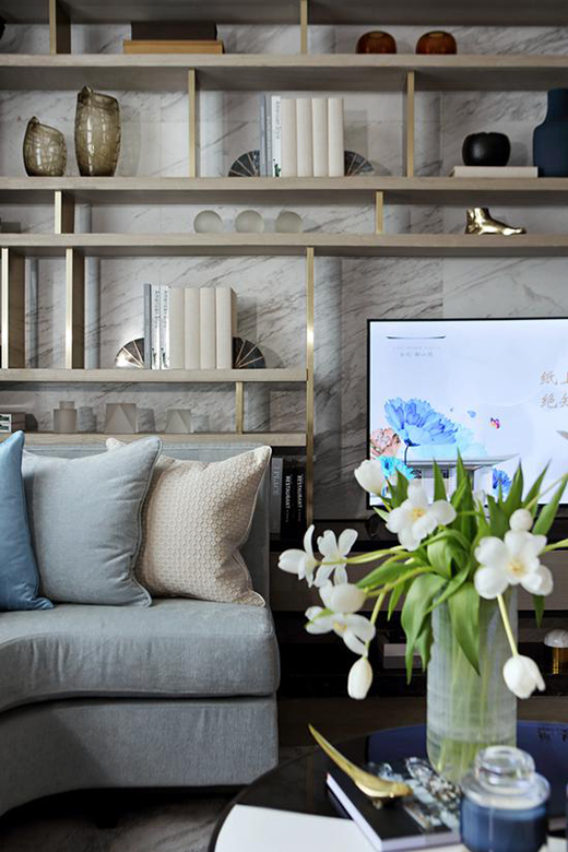 在材質的選擇上偏向自然材質的運用,主色調以大理石白搭配低彩度的高級灰為主,使空間層次感提升,更善于營造出符合當代的審美。低調的軟裝處理手法更突出了優(yōu)雅,格局規(guī)劃及張弛有度中彰顯都市生活中獨有的工匠精神與追求藝術極致的情懷。在大理石材質與精獨特的細節(jié)襯托下,展現(xiàn)出獨具特色的流暢線條與精致的組合。
