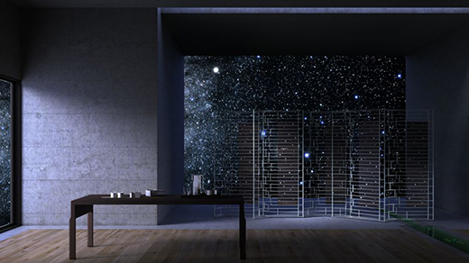不要把它們看成一本本的書,把它們看作一個(gè)個(gè)的人,他們有不同的思想和觀點(diǎn),而此時(shí)共同出現(xiàn)。在這座方舟里,我想除了書籍,還有其他一些攜帶的東西。比如家具、器物,比如屏風(fēng),這扇屏風(fēng)除了可以記錄遙遠(yuǎn)星空中的記憶外,再也沒有其他的用處。我常常鼓勵(lì)大家去設(shè)計(jì)無用之物,因?yàn)檫@時(shí)你會(huì)超越功能,在一個(gè)全新的維度,打開更多的可能。還有什么是比美更有用的東西,只有美是可以真正永遠(yuǎn)延續(xù)流傳的東西。