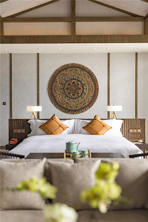 三十多年前,悅榕莊在泰國普吉島建立起第一家酒店,從那時起泰式風情的自然體驗成為悅榕莊集團的一大特色。15米的客房泳池毫無懸念便成為這間頂樓豪華客房的高配??腿嗽跓o邊際泳池暢游時,實現(xiàn)從泳池延伸到遠方的天和地。與此同時,設(shè)計師把泰式皇室享受之精妙跨越時空的界限安放在室內(nèi),讓人的感官也產(chǎn)生交錯,盡情享受這一刻泰式風情的悠然自在。