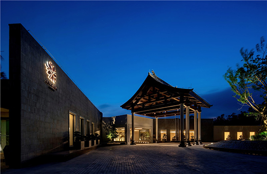 酒店地理環(huán)境優(yōu)越,整體建筑群傳承了極具嶺南特色的風韻??臻g動線設(shè)計猶如尋探桃花源,初到此境不禁令人生疑:坐落海邊的酒店從何見海?直到進入酒店,依次穿過門廊、玄關(guān)和接待處后,一片湛藍的大海如同畫卷一般呈現(xiàn)于眼前,豁而開朗又趣味橫生。而設(shè)計師設(shè)置的趣味在此才剛剛開始。