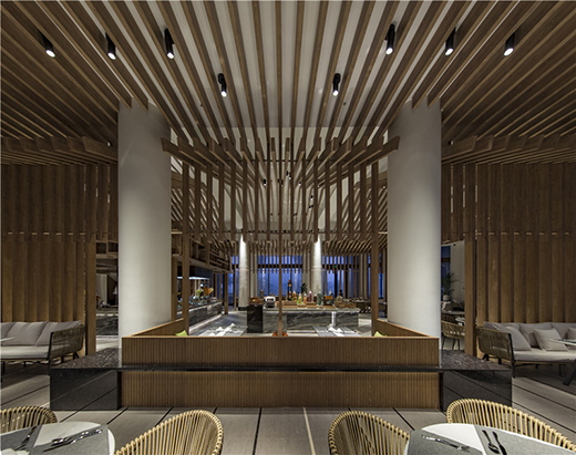 在悅椿酒店,KCA延續(xù)了酒店精神的脈絡(luò),在特色餐廳的室內(nèi)設(shè)計上以傳統(tǒng)的泰式文化作為空間導(dǎo)索,親自設(shè)計燈飾和家具以求營造泰國皇室的氣派,供旅居者體驗。對于悅椿酒店的全日餐廳,KCA提取傳統(tǒng)嶺南建筑群的結(jié)構(gòu)符號,通過新舊不同的建筑幾何手法,讓人們從另一個更有趣的角度重新認識嶺南文化的精髓。