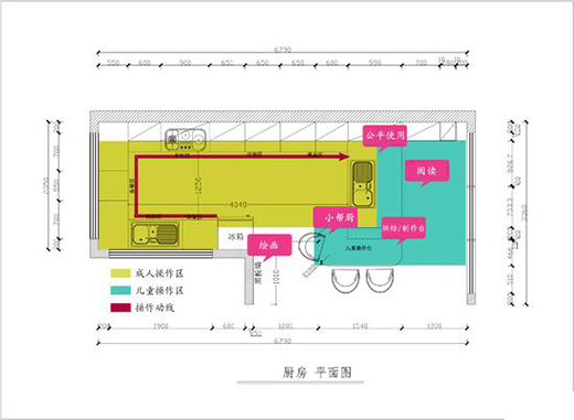 朱琳:親子廚房設(shè)計(jì)旨在讓父母與兒童都可以合理、共同的使用,同時(shí)親子的互動(dòng)過程中學(xué)會(huì)合作與分享。在這樣的設(shè)計(jì)理念下,廚房的功能性應(yīng)從成人和兒童兩方面考慮:操作區(qū)分布、收納空間;玩樂空間、玩具收納等。同時(shí)考慮到安全因素,兒童區(qū)遠(yuǎn)離電器、燃?xì)獾仍O(shè)施,此外相應(yīng)的產(chǎn)品也具有一定的容錯(cuò)性,減少不安全隱患的發(fā)生,意在為孩子創(chuàng)造一個(gè)安全的培養(yǎng)動(dòng)手能力的空間。