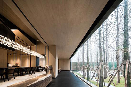 在重慶萬科森林公園的設計中,設計去除風格,去掉標簽,盡量去克制人為的符號和手法,在空間中留下更多感動的情愫與溫度,不套路亦不跟隨,塑造一座生長在森林中的、會呼吸的小木屋??臻g里的故事是親近自然的、樸素安靜且淡然,以夢為馬,讓人們成為自然最喜悅的一部分。設計不再只是外在的裝飾,而更有從復雜回歸簡單、從燦爛回歸樸素的涵義。