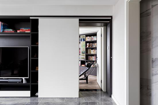 男女主人都喜歡博覽群書(shū),平時(shí)喜歡寫(xiě)字,書(shū)房便是他們家非常核心的區(qū)域。書(shū)房與客廳相連,設(shè)計(jì)師將書(shū)房門(mén)設(shè)計(jì)為暗藏推拉房門(mén),起到了真正的保護(hù)隱私的作用。