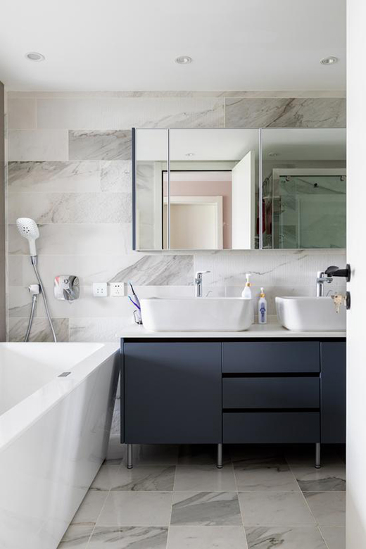 大理石瓷磚裝飾整個(gè)空間,簡(jiǎn)約不失風(fēng)格,令人立即就愛(ài)上。設(shè)計(jì)師還特別在浴室設(shè)計(jì)了獨(dú)立淋浴和獨(dú)立浴缸,極大地提高了浴室的可用性,為老人提供雙重選擇和便利。讓浴室不再只是呆板沉悶的置物空間,而真正成為藝術(shù)的載體,更成為家的一部分。