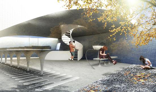 在總決賽中,熊天宇&張?bào)沐|做了一個(gè)模擬洞穴的爬寵零售空間的方案,空間整體分為三層,上層的開放平臺(tái)、地面的展示空間,以及地下庭院,代表著社交的三個(gè)過程:吸引、了解、認(rèn)同。