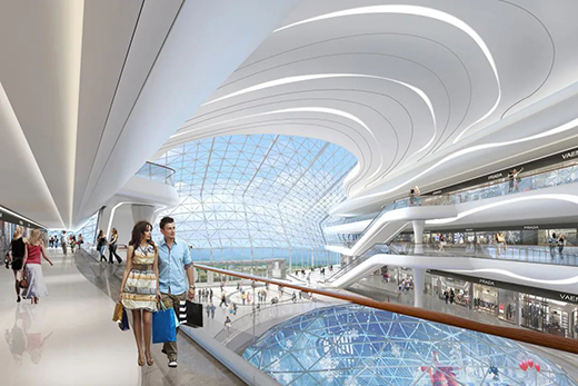 有幾個比較代表性的項目,比如海南的恒大?;◢u國際購物中心。提及海南,我們總會想到黎族、椰子、海風(fēng)、陽光等元素,但是這個商業(yè)中心定位是國際免稅商業(yè)購物城,基于此,我們將其定位趨于簡約風(fēng)雅,構(gòu)筑成一個非常國際化的空間。