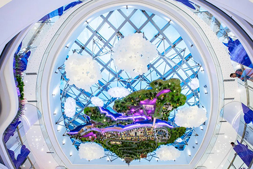 另外一個是開業(yè)不久的一個項目——無錫融創(chuàng)茂,位于太湖周邊,立足長三角輻射全國的標桿文旅項目,總建筑面積為24.62萬㎡,除了購物,還經(jīng)營文旅等娛樂性項目,匯聚融創(chuàng)樂園、融創(chuàng)商業(yè)廣場、水世界、雪世界、海世界、太湖秀劇場、星級酒店群、濱湖酒吧街8大業(yè)態(tài),這樣我們便需要從項目主題著手,賦予其不同的人文涵義,打造全業(yè)態(tài)、全天候、全客群、全方位的世界級一站式綜合旅游度假目的地,從而為項目實現(xiàn)極大的增值。