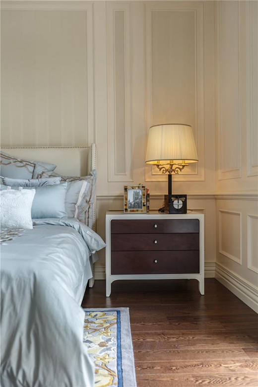 設(shè)計(jì)師對(duì)每個(gè)細(xì)節(jié)的設(shè)計(jì)都力求完美,主臥的設(shè)計(jì)格調(diào)淡雅,氛圍溫馨,精致的淡紫色花紋地毯別具一格,給整個(gè)房間增添了生機(jī)與活力。