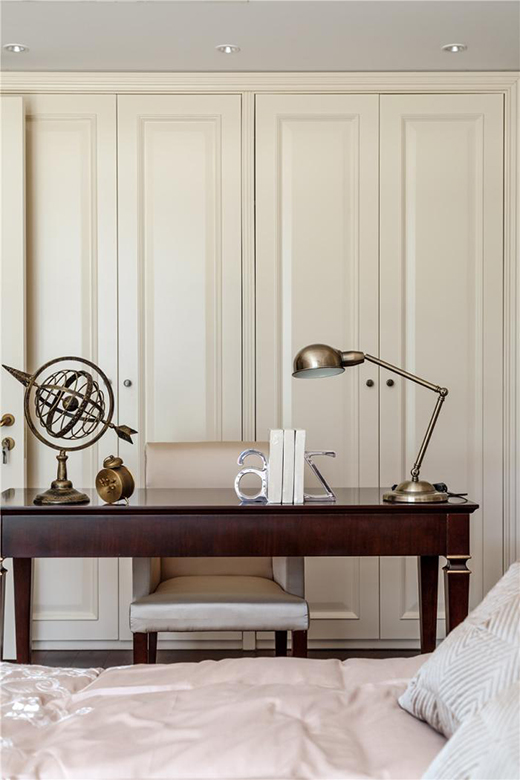 家里的老人會(huì)經(jīng)常過(guò)來(lái)一起住,所以客房的布置古典雅致,以棕色為主調(diào),一組桌椅既可作為梳妝臺(tái)亦可作為書(shū)桌使用,懷舊的鐘表滴滴答答,在時(shí)光的間隙中,一切都變得美好起來(lái)。