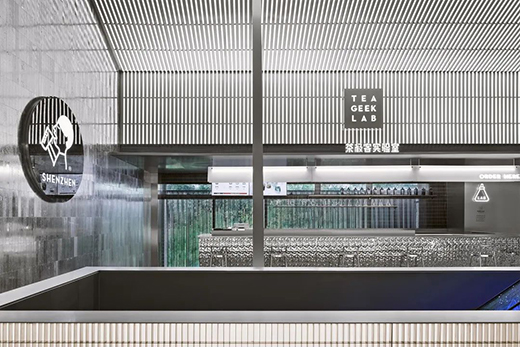 陳賢棟:我們在做項目的時候會先去尋找項目的核心,進行一個商業(yè)梳理,首先要了解項目的核心需求是什么,這是我們的工作方式。針對喜茶這個項目,我們的核心點是從它的品牌出發(fā),大家都知道喜茶對品牌的執(zhí)著,每座城市的喜茶都有它的調(diào)性。而喜茶作為深圳的本土企業(yè),在設計過程中融入本土的地域文化是一大關鍵點,而科技感是最能表達這座城市的城市DNA,所以在設計過程中,融入科技元素,最終聚合的五大實驗室?guī)Ыo了客戶全新的體驗感。