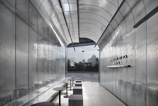 喜茶十分注重品牌形象。在深圳喜茶LAB店的設計過程中,陳賢棟融入對深圳的思考,他認為科技感是最能表達這座城市的城市基因。設計中,他通過對建筑、景觀和室內(nèi)一體化的打造,營造電子沉浸體驗,以園林為“形”,體驗為“境”。通過意境、未來、靈感三個維度,營造出集科技抽象景觀體驗感為一體的沉浸式體驗園林,現(xiàn)代靈感與傳統(tǒng)文化的碰撞融合,使得聚合的五大實驗室構造了獨特的意境。