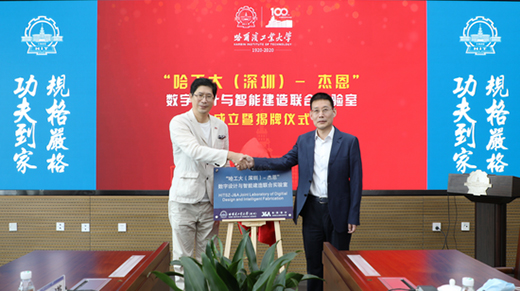 2020年6月5日下午,“哈工大(深圳)-杰恩”數(shù)字設(shè)計(jì)與智能建造聯(lián)合實(shí)驗(yàn)室正式成立舉行揭牌儀式。