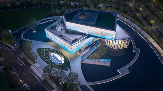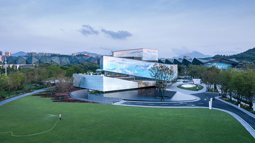 入夜,一幅立體山水長卷在水的映襯下,熠熠生輝,中國傳統(tǒng)文化在科技的應(yīng)用之下,被淋漓盡致的詮釋出來。深圳世茂深港國際中心展示館,以傳統(tǒng)文化概念解構(gòu)當(dāng)代建筑實體,跳脫出場所的狹義限制,成為一次科技與人文的交互演繹。