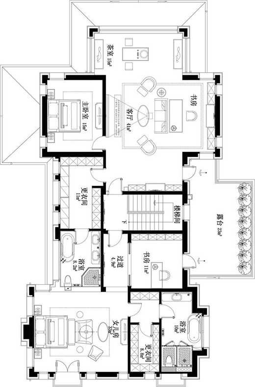 居住、工作、休閑、娛樂、愛好……不同維度的需求融合進房子的設(shè)計中,通過專業(yè)手法加以利用,能夠帶給居住者更加自在舒適的體驗。“比如這個家的男主人會喜歡與朋友聚會,設(shè)置幾個舒適的露臺以及增加池塘,都能夠從功能以及感官上滿足這項需求。”設(shè)計師如果具備這樣換位思考的能力,便能夠為業(yè)主帶來許多居住上的驚喜。