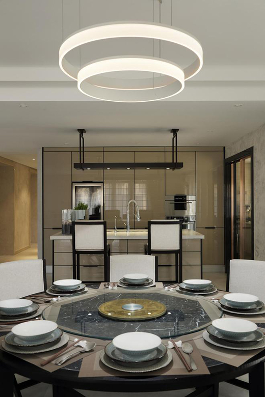 針對空間的細節(jié)打磨,李中偉選擇結(jié)合不同形式的設(shè)計手法,在滿足業(yè)主品質(zhì)要求的同時,空間的唯一性也被體現(xiàn),“專屬”或許也是私宅設(shè)計中最令人著迷的特性了。