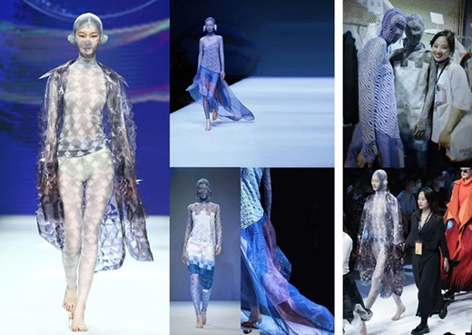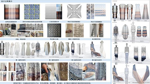 2、在設(shè)計(jì)實(shí)踐中,根據(jù)服裝的立體空間特性,從服裝的圖案與肌理兩個(gè)角度入手,利用圖案的視錯(cuò)設(shè)計(jì)與面料的立體改造,打造服裝在立體空間上的視錯(cuò)覺(jué)效果。