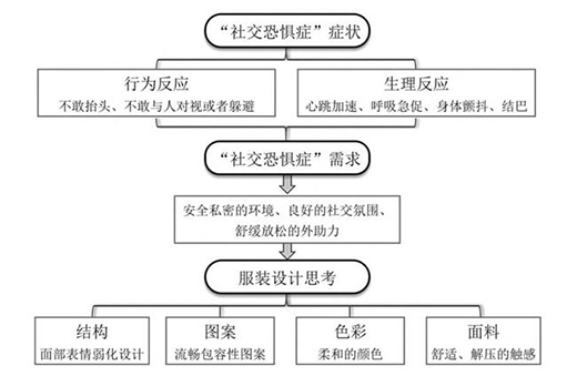 畢業(yè)設(shè)計(jì)的目標(biāo)群體定位在具有“社交恐懼癥”的人群上,針對(duì)其病情表現(xiàn)、患病原因以及相應(yīng)診治方法進(jìn)行調(diào)研與信息梳理,對(duì)社交恐懼癥的產(chǎn)生場(chǎng)景、診斷依據(jù)進(jìn)行歸納。鎖定了社恐人群的視覺(jué)注意偏向,并關(guān)注到目標(biāo)人群容易對(duì)具有社交壓力的畫面(如:消極的面部表情等)產(chǎn)生神經(jīng)敏感的反應(yīng)特點(diǎn),進(jìn)而得出系列設(shè)計(jì)的思維路徑圖。