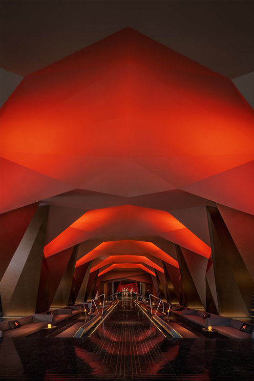 莊瑞安:每個(gè)酒店品牌都有自己的基因,對(duì)于W而言,他的DNA就是時(shí)尚、音樂、活力等元素在設(shè)計(jì)中的表現(xiàn)。我們剛才談到設(shè)計(jì)的“故事性”,如何將故事與室內(nèi)空間的造型、色彩與燈光相結(jié)合,運(yùn)用這些元素將設(shè)計(jì)的故事線表達(dá)完整,都是與之相關(guān)的設(shè)計(jì)邏輯。我們將這一故事線應(yīng)品牌要求融入到設(shè)計(jì)中去,以現(xiàn)代抽象的方式表現(xiàn)在空間之中,而非具象地陳列某些元素,就能夠使品牌基因自然地融入到設(shè)計(jì)中去。