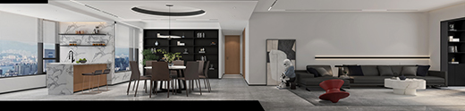 家具采用國內(nèi)、國際大牌,每個物件不僅僅是潮流單品,更是一個故事。無論是閱讀書籍、親子交流,還是小憩片刻、放空自我,都是極大的享受。每個單品都充滿著潮流的氣息,走在時尚前沿。與此同時,設(shè)計了大面積落地窗,景觀的變化即是四季的變化,感受生活也是激發(fā)靈感。黑白調(diào)和,大紅點綴,在極簡中感知自由。