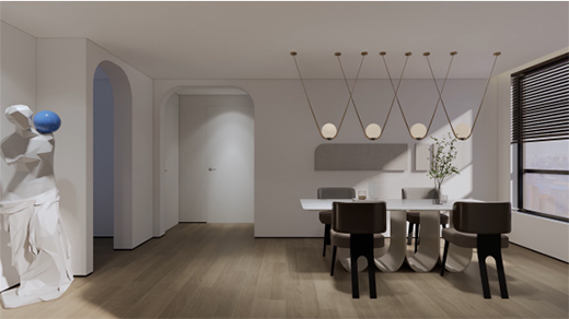 《帆歸?心港》以其極簡風(fēng)格打造出了我們心靈之居。流暢的線條勾勒,高級灰和雅白的空間搭配演繹出簡雅的生活美學(xué),整體簡潔優(yōu)雅又不失大氣,與世無爭的氣質(zhì)油然而生。待你成功到達(dá)彼岸,待你功成名退,看遍了千帆過盡,還有一處可存放心靈的靜謐之處,便是這心港——“家”。