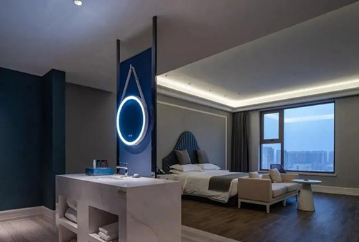 渭南建國酒店運用了“古為今用”的設(shè)計手法,汲取了渭南“山、文、城、水”的當(dāng)?shù)匚幕?,以“大隱于城,寄情山水”的設(shè)計理念為基調(diào),營造了室內(nèi)各空間功能邊界的融合,各功能之間相互的借調(diào)與轉(zhuǎn)換,空間美感互為景致的效果。