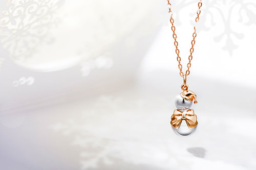 roseonly應(yīng)季推出限量雪人玫瑰飾品項(xiàng)鏈。