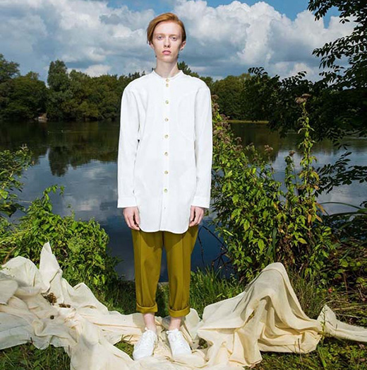 Niro通過對耬斗草(Columbine)花瓣的復式5瓣結構的的分析與演化,巧妙的通過結構與裁剪呈現(xiàn)了商業(yè)服裝中幾乎從沒有出現(xiàn)過的的pleat打褶方式,而設計師又將這種有趣的設計點低調地融合到了多件主打單品的細節(jié)部位,比如衣袖,衣領,紐扣扣眼等部位,在保證有趣功能性和時尚感的同時又不會過分炫耀而失去品牌的調性。 一直在亞麻產品上有自己堅持的NIRO WANG LONDON,在這一季的春夏的針織產品上也下足了功夫,Niro結合意大利全新亞麻混合紗線所特別開發(fā)的立體knitwear針法將為穿著者的2018年的夏天帶來全新的亞麻體驗,而這些由英國萊斯特(Leicester)生產的針織產品更是品質的保證。部分純手工的繡花工藝不僅增加了植物圖案的質感,同時讓整個系列更加飽滿。