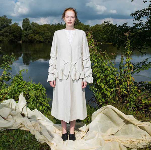 在兩個多月的潛心調研中,Niro從英國皇家植物園Kew Gardens的圖書館中挑選了五種植物,并進行了進一步的研究。通過Niro獨特的服裝設計語言和手法,這些植物被有機的與2018春夏系列結合起來。Ode to The 5中的五種植物包括:腎葉打碗花(Seaside Bindwood),忍冬(Honeysuckle)、天仙子(Henbane)、耬斗草(Columbine)和野豌豆(Wood Vetch)。這幾種植物不僅僅因為獨特的美妙形態(tài)貫穿服飾產品之中,它們分別蘊含的奇異故事更是精彩異常。