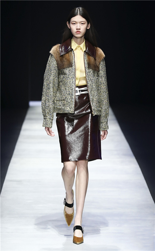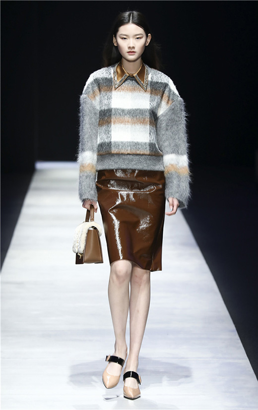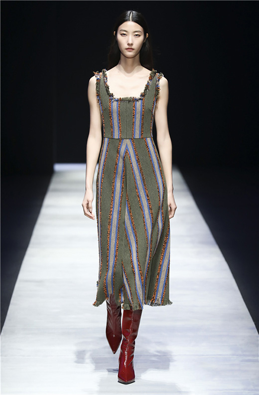系列通過色彩與材質(zhì)的對(duì)撞與層疊搭配展現(xiàn)自然優(yōu)雅、摩登當(dāng)代、精致且女性化十足的新女性造型。外套采用手工感提花和細(xì)膩的羊毛等溫暖感材質(zhì),剪裁成擁有利落肩型和修長腰身的當(dāng)代摩登風(fēng)貌。流動(dòng)感的剪裁被應(yīng)用于合體修身的連衣裙裝,流蘇、刺繡、摩登領(lǐng)片、閃亮裝飾等精致細(xì)節(jié)又為優(yōu)雅浪漫的線條感平添了一份精致品味。寬松的粗棒針羊絨針織帶來蓬松感的溫暖,而多色提花針織中加入金蔥,以迷你短打的箱型結(jié)構(gòu)令整組系列的層次更加豐富靈動(dòng)。