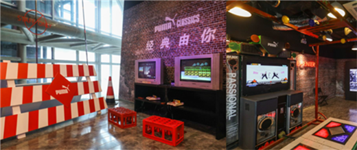 本次活動(dòng)現(xiàn)場(chǎng)以紐約的布朗克斯(Bronx)街區(qū)為靈感,場(chǎng)內(nèi)布置融入各種街頭復(fù)古元素?;顒?dòng)當(dāng)天,兩名“彪馬幫”成員千千和Danny身著全新#經(jīng)典由你#系列現(xiàn)身活動(dòng)現(xiàn)場(chǎng),在“街頭舞房”傳授到場(chǎng)來(lái)賓PUMA“彪”準(zhǔn)舞步。而長(zhǎng)廊處被打造成“街區(qū)后巷”——復(fù)古海報(bào)墻帶你回顧SUEDE 50年傳奇;而PUMA SUEDE 50周年各潮流合作鞋款則被置入自動(dòng)販?zhǔn)蹤C(jī)內(nèi)逐一展示,完整呈現(xiàn)年度潮流大事件;“街邊潮店”則完整展現(xiàn)PUMA #經(jīng)典由你#全系列單品,令人更為驚喜的是,PUMA與國(guó)內(nèi)新銳設(shè)計(jì)師中的領(lǐng)軍人物Private Policy、Attempt、Staffonly和Angus Chiang攜手改造經(jīng)典T7套裝,并在現(xiàn)場(chǎng)進(jìn)行展覽,來(lái)賓們可在現(xiàn)場(chǎng)看到這群設(shè)計(jì)天才們的鬼斧神工創(chuàng)造力,并從專訪中了解到他們與PUMA合作的心路歷程。