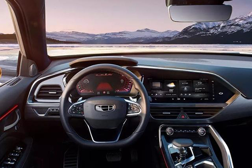 內(nèi)飾部分,排擋區(qū)與大燈高度調(diào)節(jié)開(kāi)關(guān)等諸多細(xì)節(jié)融入了具有中國(guó)特色的吉利回形家族元素,在和諧統(tǒng)一的基調(diào)中強(qiáng)化了中式情感與吉利品牌之間的呼應(yīng)與關(guān)聯(lián)。除此之外,具有“中式折紙藝術(shù)形態(tài)”的車門板設(shè)計(jì)以及采用了“陰陽(yáng)”與“翻轉(zhuǎn)”的設(shè)計(jì)理念的空調(diào)出風(fēng)口亦是“中式美學(xué)”的體現(xiàn)。