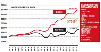 美國(guó)國(guó)際設(shè)計(jì)管理協(xié)會(huì)發(fā)布的設(shè)計(jì)價(jià)值研究報(bào)告中顯示:以設(shè)計(jì)為驅(qū)動(dòng)力的企業(yè)在過去十年間的商業(yè)表現(xiàn)力比處于標(biāo)準(zhǔn)普爾指數(shù)平均值的企業(yè)要高出228%。