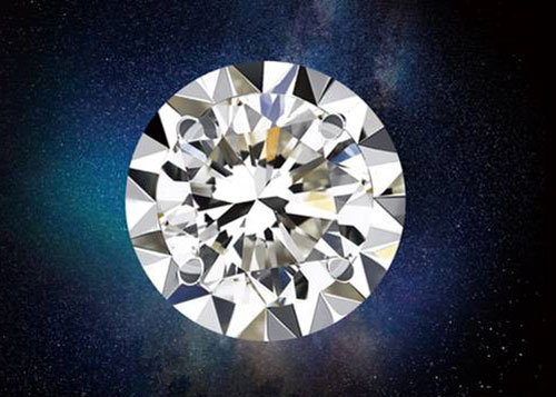 在切割好的圓形金屬上以黃金分割比例配上大小合適的鉆石,并在金屬片上安裝好固定鉆石的四個小爪,再通過10倍顯微鏡放大把鉆石固定在和鉆石反射面一樣金屬切割面的位置上,讓鉆石的折射面和金屬的折射面在同一個角度上,在視覺上讓金屬和鉆石融為一體,從而把鉆石的直徑折射面擴(kuò)大30%。
