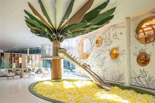 設(shè)計將天真浪漫的孩童暢想以童話場景的敘事導覽展開,以“童·游”為足跡探尋兒童視角下的美好世界,在里面也置入了很多公司原創(chuàng)的藝術(shù)品,設(shè)計通過色彩理解與畫面表現(xiàn)串聯(lián)起一個完整的童話故事,為日常生活注入一抹鮮明的亮色,豐富著每一個生活場景的趣味性,讓人們享受每一個愉悅瞬間,純凈真摯,自然靈動。
