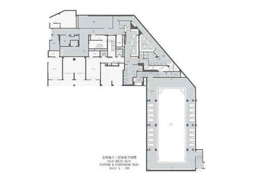 兩邊的夾絲玻璃與水紋鏡墻面再次強化了植物墻的視覺主題。淡藍色天花板采用光纖燈勾勒出宛如銀河的圖案,與水面的倒影交相輝映,讓整個泳池宛如夢幻。徜徉于唯美的泳池里,邂逅粼粼波光、盈盈光芒,感受設(shè)計師描繪出的那份自然與浪漫的情懷。