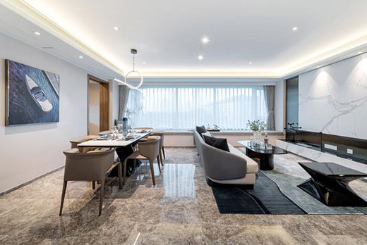 遵循“如無必要,勿增實體”的理念,設(shè)計師追溯室內(nèi)設(shè)計本源,回歸建筑美學初心,摒棄繁冗復雜的元素堆砌,以精準的設(shè)計語言、獨特的設(shè)計視角、新奇的設(shè)計思路,充分發(fā)揮了空間與建筑、光影、材質(zhì)、色澤的對話作用,不需一筆一墨,以空間為畫布、木石為畫筆,傳神、真切地刻畫出了現(xiàn)代菁英生活的真實寫照。