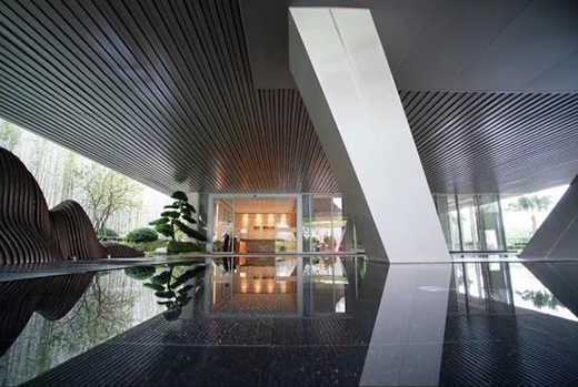 跑步機上方的棚頂運用鏡面不銹鋼,拓寬了視覺的邊界,使得整個空間在垂直方向上得以進一步的延伸,避免了業(yè)主在跑步時產(chǎn)生的單調(diào)及枯燥感,兼顧了實用性和觀賞性,建筑的功能需求和美學需求在此天衣無縫地合二為一。
