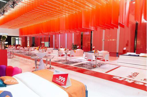 大面積采用德國紅為主色調(diào),帶來強烈的視覺沖擊感,同時也洋溢著熱情與奔放,既活潑又嚴肅。在材質(zhì)上我們追求簡潔、低碳環(huán)保、不過渡包裝。在區(qū)域上的劃分,簡潔明朗,搭配生活感十足的紅色帷幔,在空間秩序上嚴謹又不失情趣。