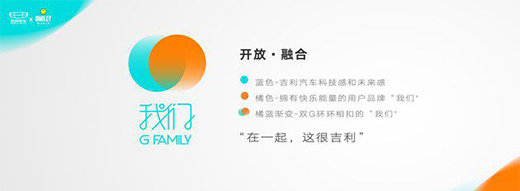 活動(dòng)現(xiàn)場(chǎng),一組由用戶創(chuàng)造、設(shè)計(jì),呼聲最高、最受歡迎的設(shè)計(jì)方案,作為“我們”品牌LOGO正式發(fā)布。據(jù)設(shè)計(jì)者介紹,“我們”的品牌LOGO以開放融合的兩個(gè)圓為底,用藍(lán)色代表吉利汽車科技感和未來(lái)感,橘色代表?yè)碛锌鞓纺芰康挠脩羝放啤拔覀?quot;,橘藍(lán)漸變形成雙G環(huán)環(huán)相扣的“我們",象征“在一起,這很吉利”。文字LOGO“我們”和英文“G FAMILY"緊密相連、渾然一體,象征吉利與千萬(wàn)用戶融合成一個(gè)充滿正能量的快樂大家庭。據(jù)了解,從5月20日“我們”品牌公布起,僅僅半個(gè)月時(shí)間,已有1000多名用戶進(jìn)行LOGO設(shè)計(jì)投稿,用戶參與共創(chuàng)的熱情高漲。