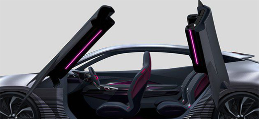 Vision Starburst的外部輪廓、線條和X型燈具,均呈現(xiàn)由中央向兩側(cè)發(fā)散、延展的設(shè)計(jì)特征。更銳利的線、面組合,以及頗有“賽博朋克”感的配色,既勾勒出堅(jiān)韌、有力的肌肉線條,也蘊(yùn)含著宇宙能量釋放、迸發(fā)的恢宏氣勢(shì),整體視覺效果更加炫酷、更加動(dòng)感有型。
