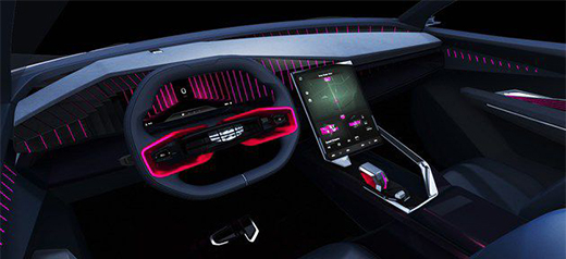 Vision Starburst座艙內(nèi)部設(shè)計(jì)同樣汲取自“宇宙能量”。與外門板相似的線條,也體現(xiàn)在內(nèi)門飾板上。遍布座艙的宇宙射線狀氛圍燈所營(yíng)造出的幽邃氛圍,更智能、更前瞻、更科技。置身Vision Starburst中,仿佛與有智慧的生命體融合,信息傳遞與交互將像本能一樣自然,表達(dá)著吉利對(duì)未來(lái)數(shù)字化、科技化人車交互的思考和探索。