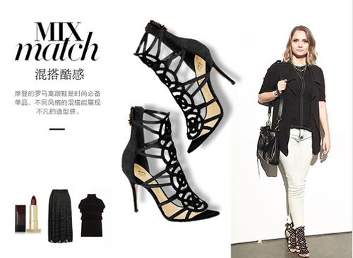 經(jīng)典的黑白配加上摩登的羅馬高跟鞋,簡簡單單卻酷勁十足,但太過單調的黑白色,卻總是一不小心就過于嚴肅。不如選擇一雙精致鏤空的高跟鞋作為搭配手段,讓極具雕刻感的細節(jié)設計來彰顯自己獨特的時尚品味。