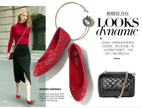 如果黑白色并不是你眼中的潮流配色,那跳躍的時尚紅或許能讓你眼前一亮!范味十足的紅色毛衣配上女人味的一步裙,優(yōu)雅而不失格調。再搭一雙精致的紅色平底鞋,露出潔白纖細的腳踝,萬種風情盡在其中。