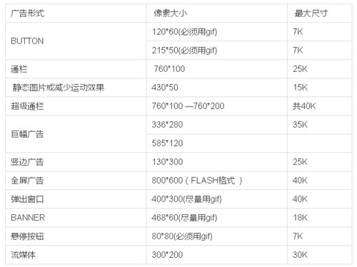全尺寸banner為468*60px,半尺寸banner為234*60px,小banner為88*31px